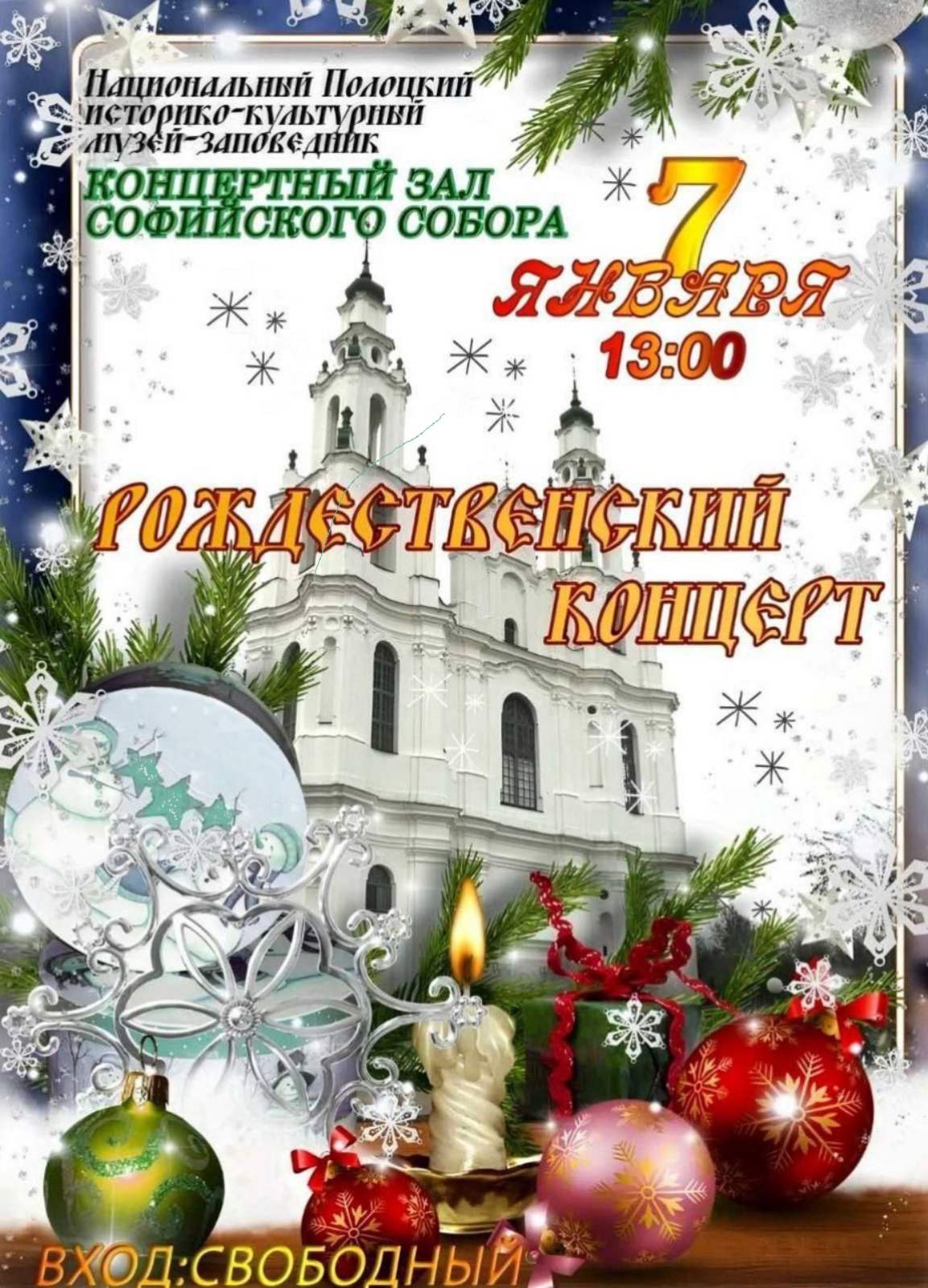 По сложившейся доброй традиции в день Рождества Христова, 7 января, в 13.00 в Софийском соборе пройдет рождественский концерт.